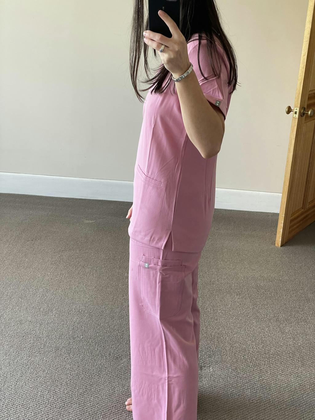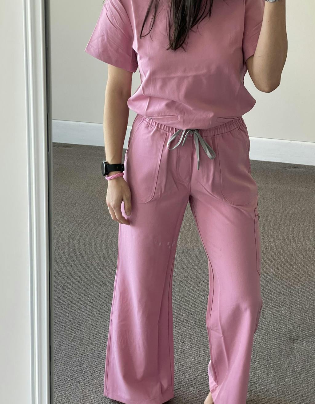 Designed for the nurses looking for function without sacrificing style - the Duo Pocket Top brings practicality and polish together. Designed with three cleverly placed pockets, including two front pockets with one hidden inner compartments, it keeps your essentials like pens, notes, and IV dots right where you need them.